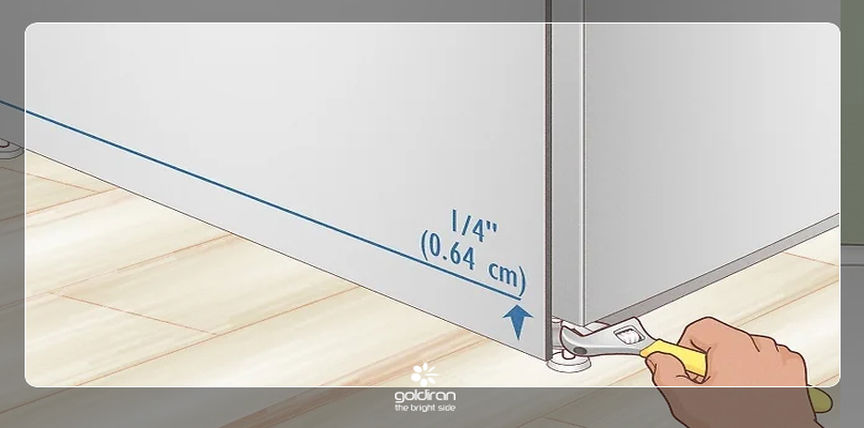- پایههای جلو و عقب یخچال را بهطور دقیق تنظیم کنید.